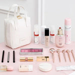 The elegant Amelia cosmetic bag perfectly combines style and functionality. This beautiful storage bag offers ample space for all your beauty products, keeping them organized and within reach.