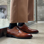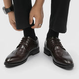 Clean the shoes with a soft, slightly damp cloth. Avoid strong cleaners or chemical products. Use a leather conditioner several times a year to keep the leather soft and prevent cracking. When not in use, store the shoes in a cool, dry place and avoid direct sunlight or heat sources. Avoid soaking the shoes in water. If they get wet, gently pat them dry and let them air dry naturally — never use a heater.