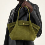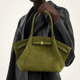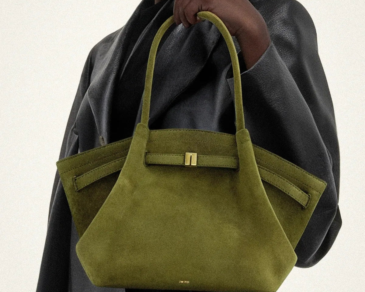 The style of the season! With a luxurious suede exterior and a magnetic closure at the top, this bag fits everything you need and more. The practical inner flat pocket helps keep your belongings organized.